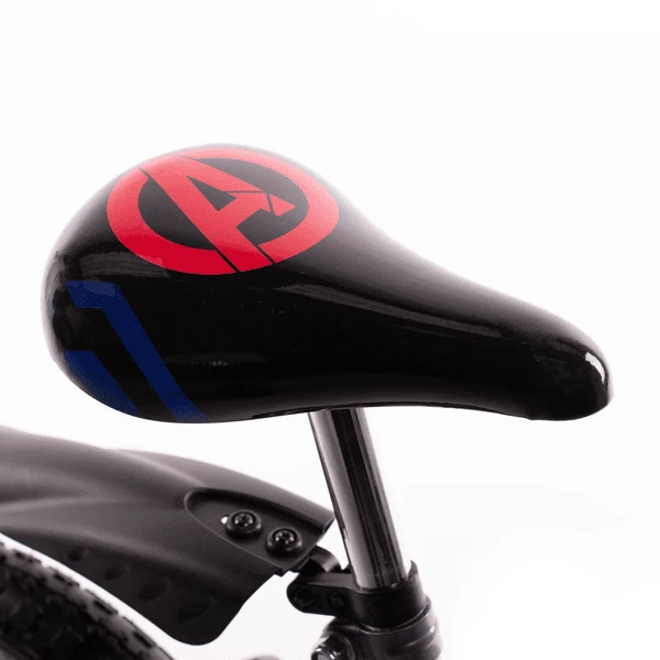 - Deze 14 inch Avengers fiets valt echt op! De coole kleuren en graphics en niet te vergeten de ongelooflijk coole Avengers S child aan de voorkant