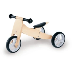 De hoogwaardige handgemaakte bamboe duwfiets is voorzien van een voetsteun. De