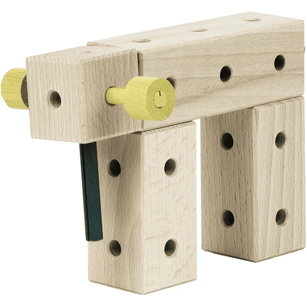 Daarbij kunnen de bouwstenen altijd weer uit elkaar gehaald worden met de speciale Matador tang en weer in elkaar gezet worden tot een nieuwe structuur. De houten bouwstenen met de afmetingen 4×4 cm zijn aangepast aan de handgrootte van kleine kinderen. De geïllustreerde bouwinstructies ondersteunen het zelfstandig bouwen. Zes verschillende hoofdboxen in verschillende maten (van 34 tot 350 onderdelen) en nuttige aanvullende boxen stellen onze kinderen in staat om naar hartelust te werken.