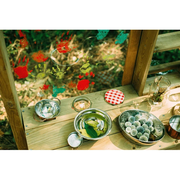 Hou van je omgeving. Alle producten van de Discovery lijn zijn gemaakt van duurzaam hout. De keuken is voorzien van handige planken voor het opbergen van alle vondsten uit het bos, houders voor je beplante struiken en een ingebouwde plantenpot voor kleine tuiniers. Creëer en schilder op het onderhoudsvriendelijke tekenoppervlak. Het bevat een decoratief windklokkenspel van bamboe en ook een klein kweekstation voor kleine landbouwers.