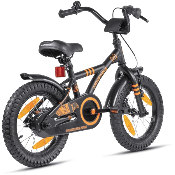 - Prometheus veiligheidspakket: met aluminium bel, stuurbeschermer, TüV-gecertificeerde handgrepen, reflecterende antislip Pedal e, kettingkast, spatborden, afneembare zijwieltjes en extra grote reflectoren rond de kinderfiets.