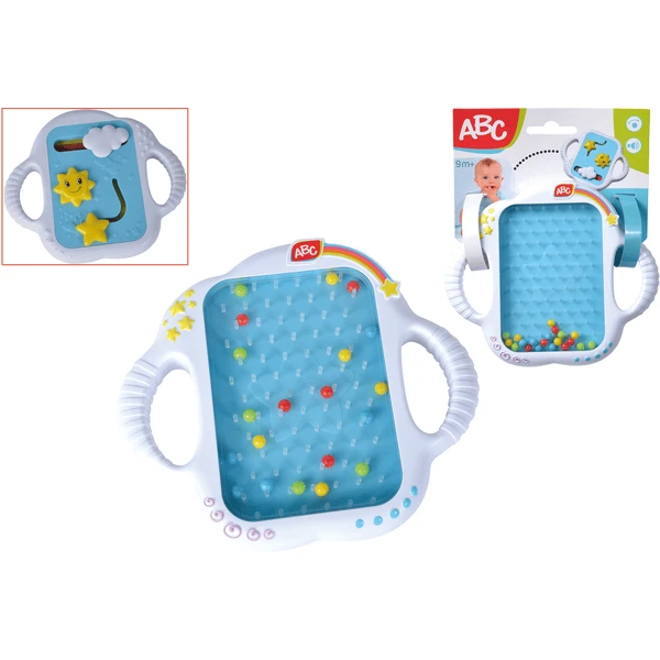 Met ABC Rainmaker Board kunnen de kleintjes hun motoriek en akoestische waarneming trainen. De Board heeft twee kanten om op te spelen. Aan de ene kant kunnen de zon, de wolken en de ster worden bewogen en aan de andere kant rollen de kleine kleurrijke balletjes over de Board . Hierdoor ontstaat het regenachtige geluid dat uw baby veel vreugde en ontspanning geeft.