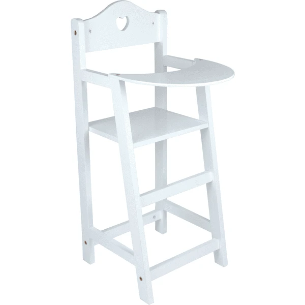 De stoel is wit gelakt en versierd met een kleine uitsnede in de vorm van een hart.
