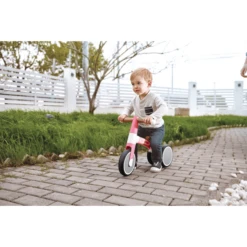 - Een loopfiets ontwikkelt de motoriek en het evenwicht van uw kind, waarbij de paslengte toeneemt met het vertrouwen
