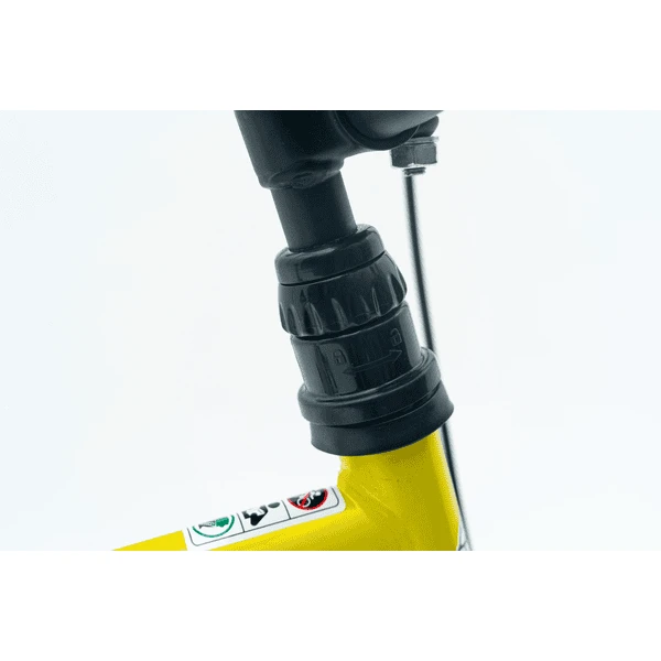 - Zadel: Comfortabel en gedecoreerd kinderfietszitje met geïntegreerde zadelpen
