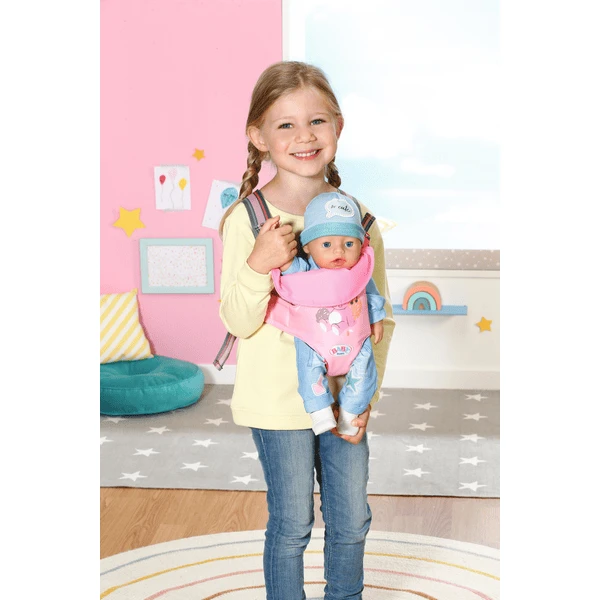 De binnenzijde en de heupgordel van de drager zijn bedrukt met leuke afbeeldingen. Op de roze buitenstof zit Beer Bruno net zo ontspannen als BABY die binnenin geboren is. Dankzij het verstelbare harnassysteem kunnen mama en papa hem altijd om beurten dragen.